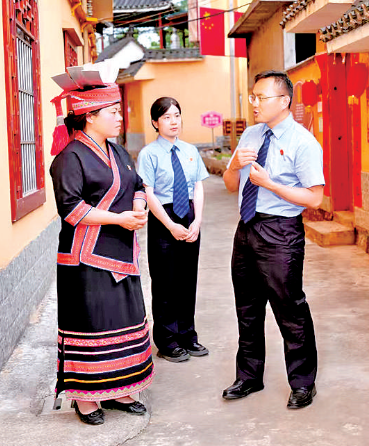 来宾市金秀县检察院检察官调研民族村寨保护工作。资料图片